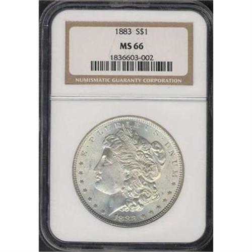 <b>1883 Morgan Dollar. NGC graded MS66.</b> An untoned Superb Gem with excellent luster and surfaces that are free from all but the most trivial luster grazes. Even the finest, most delicate detail seen on this coin struck with the usual exactness for a Philadelphia Mint issue <b>(PCGS # 7142)</b>