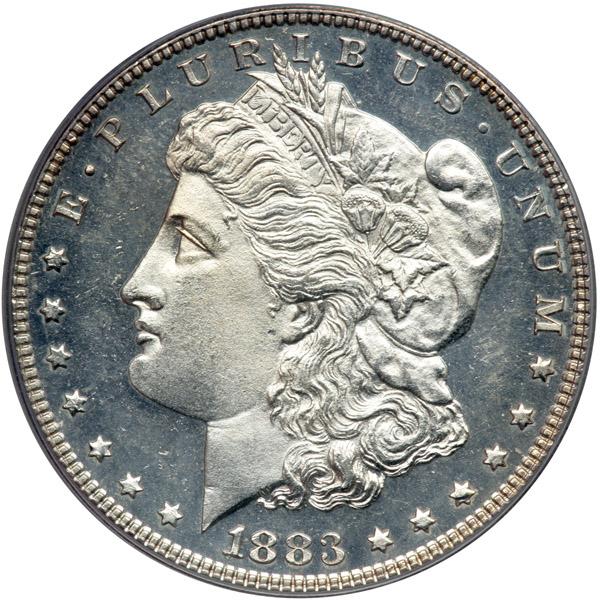 1883 Morgan Dollar PCGS graded Genuine. Cleaned. Untoned with prooflike surfaces. Our grade is MS63PL (PCGS # 7142) .