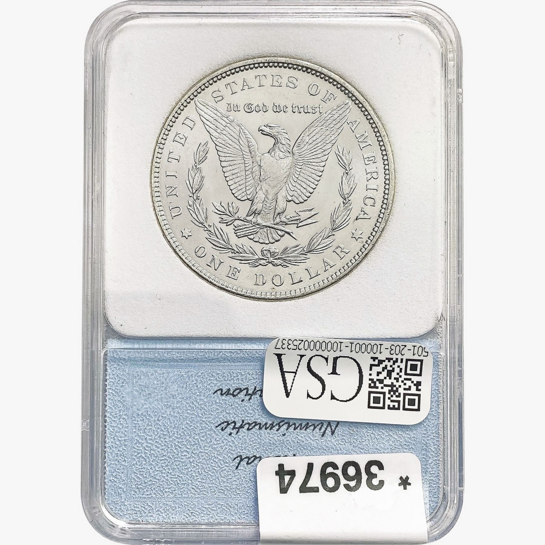 COINS AND CURRENCY LISTED IN GSA’S CATALOG AS GRADED AND ENCAPSULATED BY PCGS, NGC, ANACS, ICG, PCGS CURRENCY, PMG, PCGS BANKNOTE GRADING, CMC OR ANY OTHER THIRD-PARTY GRADING SERVICE ARE LIKEWISE SOLD “AS-IS” EXCEPT AS EXPRESSLY SET FORTH HEREIN. ALL THIRD-PARTY GRADING SERVICE GUARANTEES, INCLUDING AUTHENTICITY, ARE THE SOLE RESPONSIBILITY OF THE THIRD-PARTY GRADING SERVICE AND NOT WARRANTIES OR GUARANTEES OF GSA. BIDDERS SHOULD CONTACT THESE THIRD-PARTY GRADING SERVICES DIRECTLY WITH RESPECT TO ANY CLAIMS OR QUESTIONS THEY MAY HAVE CONCERNING THEIR GUARANTEES AND WARRANTIES. BIDDERS ACKNOWLEDGE AND AGREE THAT AUCTIONEER IS NOT BOUND BY OR LIABLE FOR ANY OPINION OR CERTIFICATION BY ANY THIRD-PARTY GRADING SERVICE. REMOVAL OF A PRODUCT FROM ITS PROTECTIVE CASING OR HOLDER OR ALTERATION OF ANY COIN HOLDER WAIVES ALL RIGHTS CONCERNING THE PRODUCT CONTAINED THEREIN.