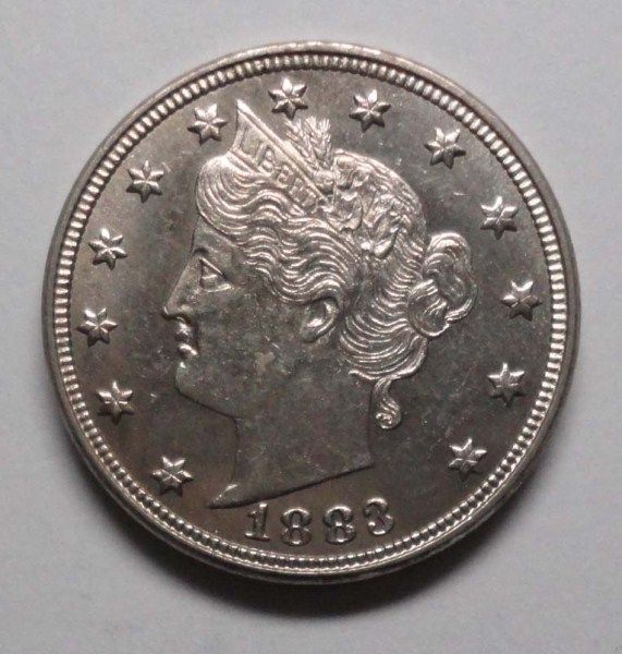 1883 N/C 5cents popular 1 year type Ch/Gem BU 65, fully struck
