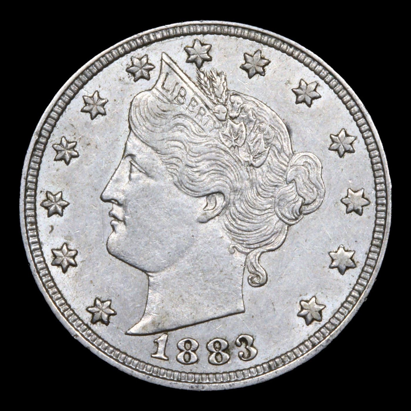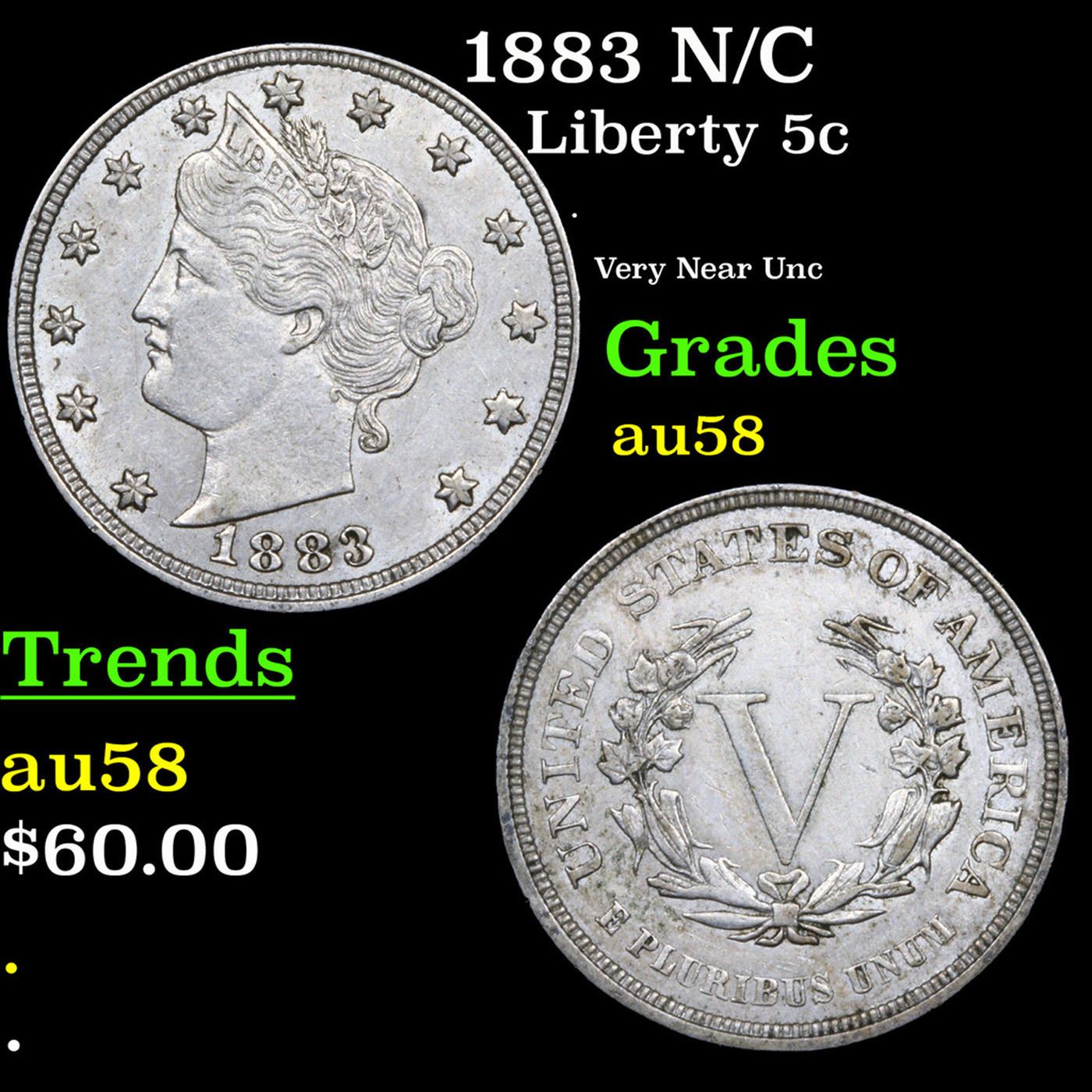 1883 N/C Liberty Nickel 5c Grades Choice AU/BU Slider.
