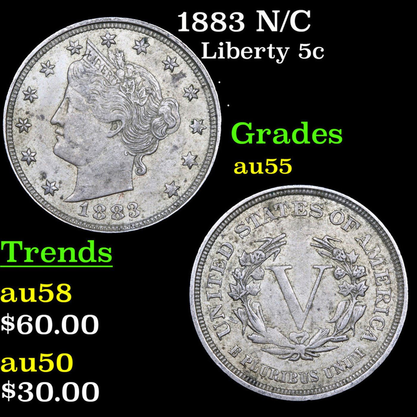 1883 N/C Liberty Nickel 5c Grades Choice AU.