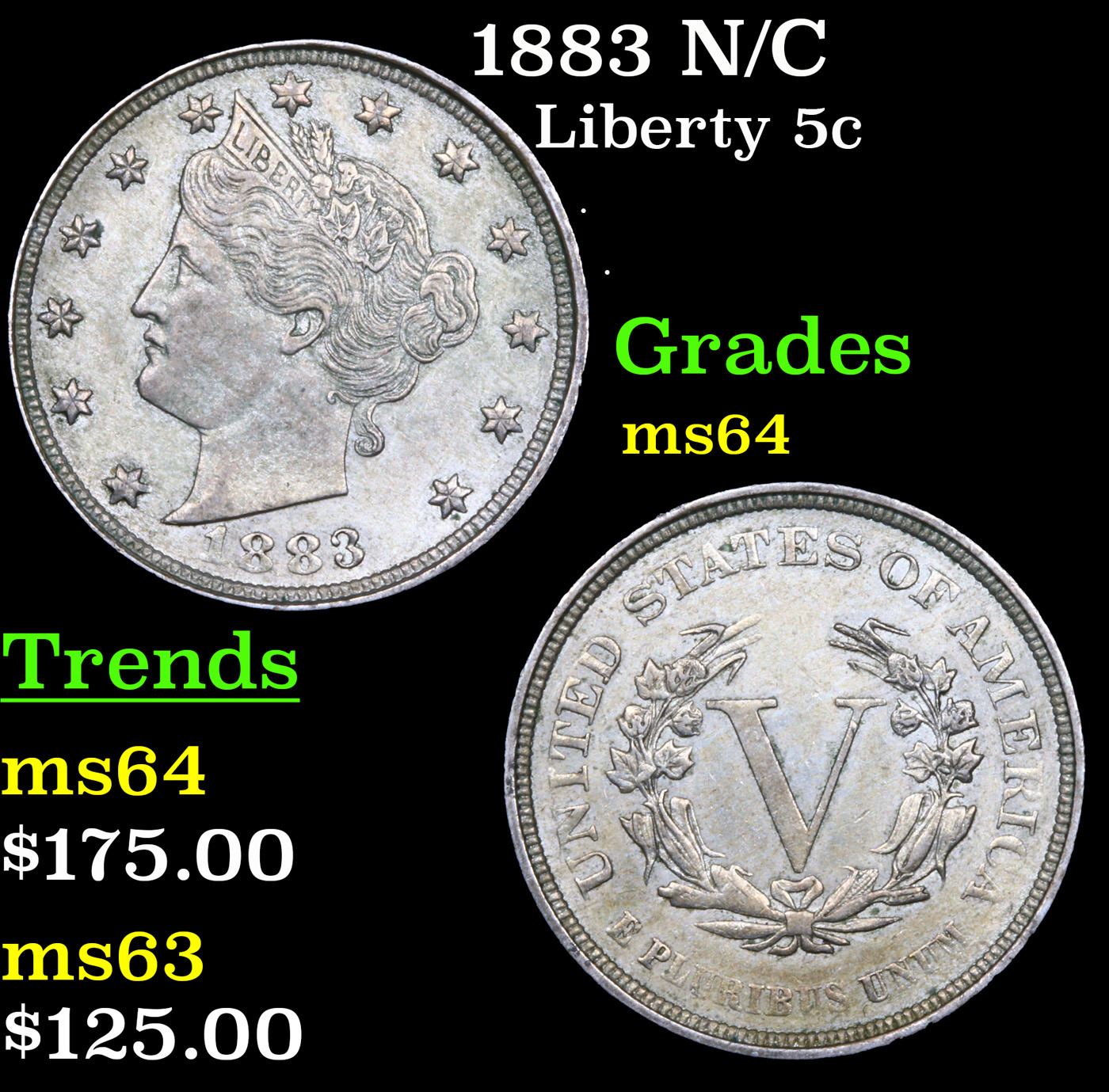 1883 N/C Liberty Nickel 5c Grades Choice Unc.