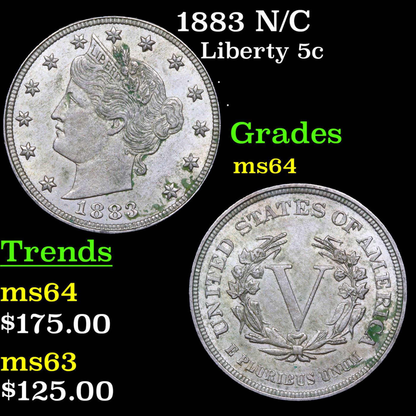 1883 N/C Liberty Nickel 5c Grades Choice Unc.
