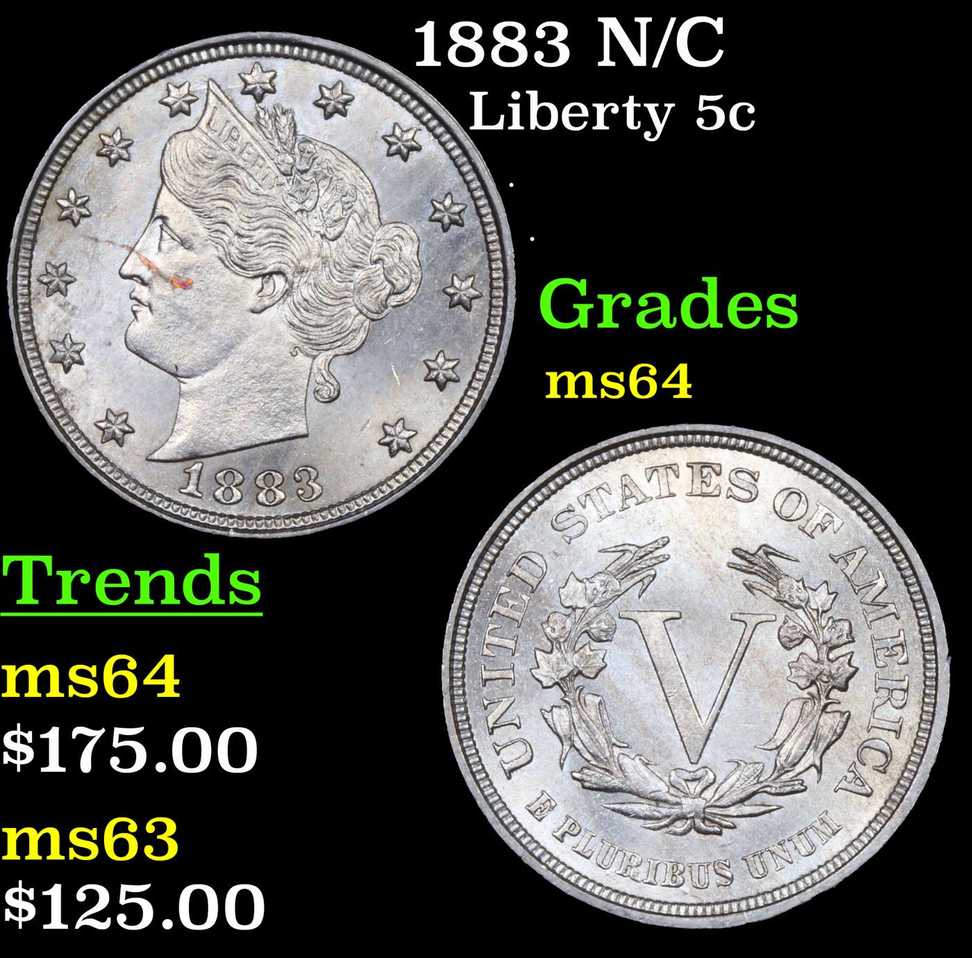 1883 N/C Liberty Nickel 5c Grades Choice Unc.