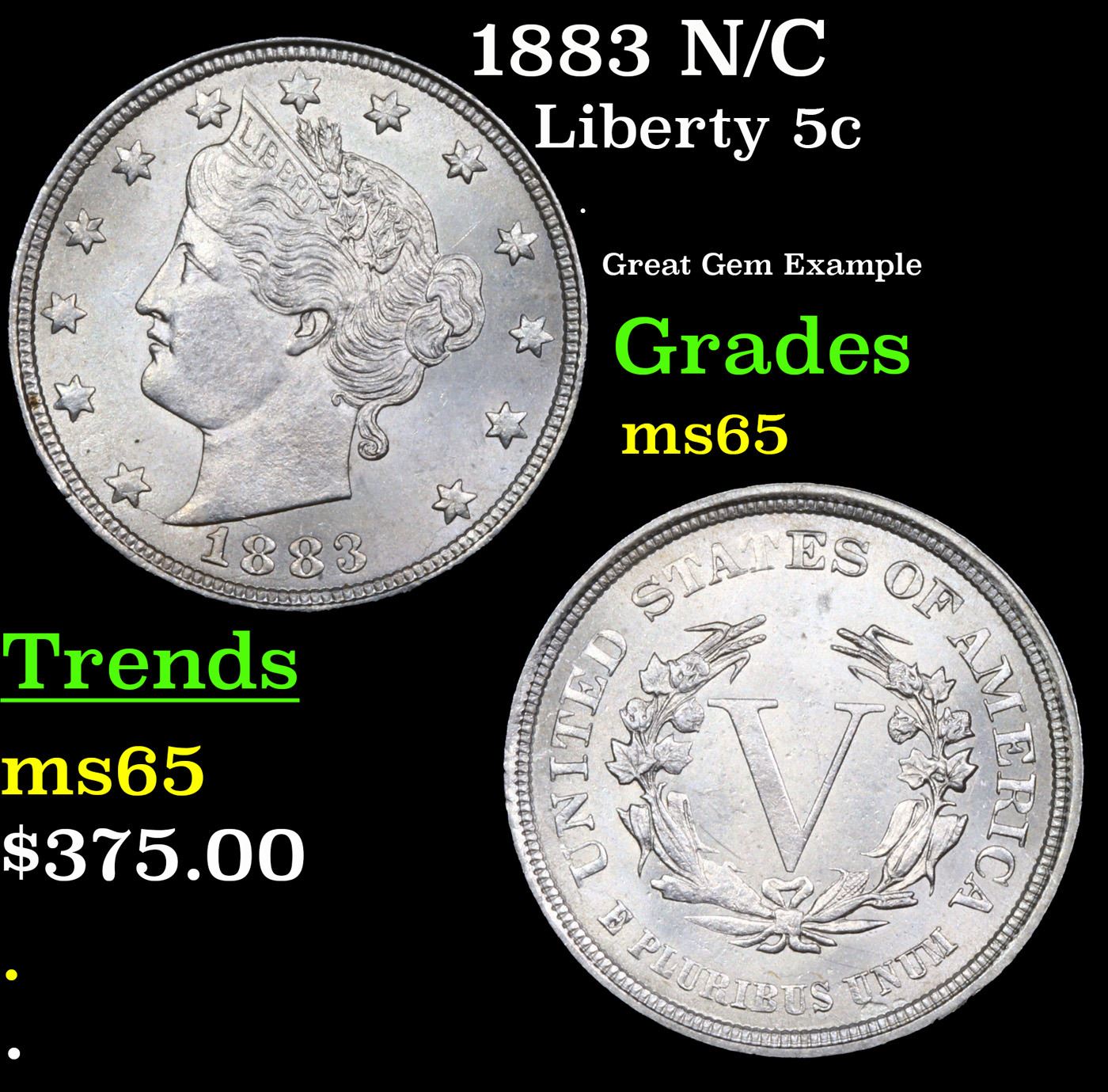 1883 N/C Liberty Nickel 5c Grades GEM Unc.
