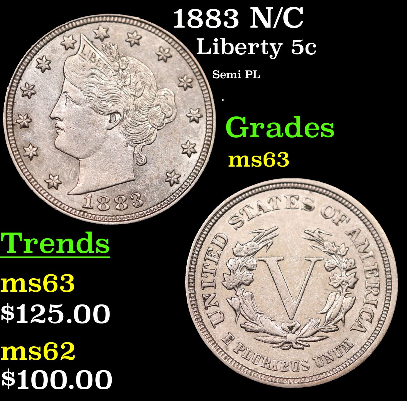 1883 N/C Liberty Nickel 5c Grades Select Unc.