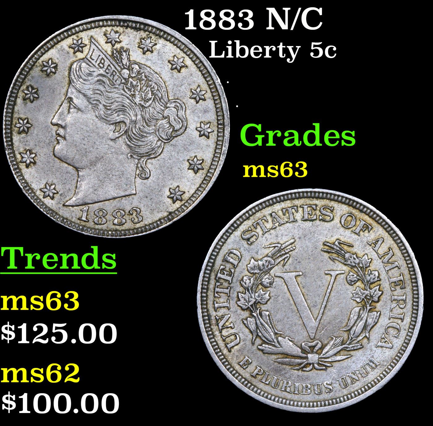 1883 N/C Liberty Nickel 5c Grades Select Unc.