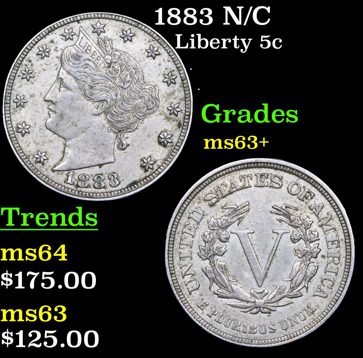 1883 N/C Liberty Nickel 5c Grades Select+ Unc.