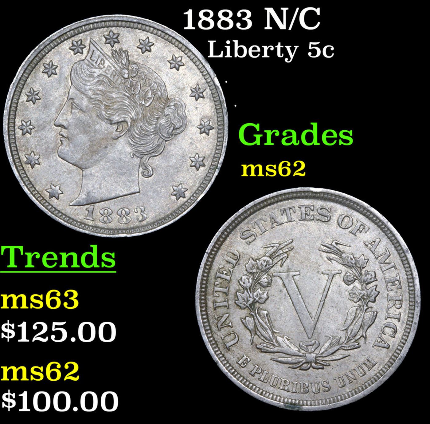 1883 N/C Liberty Nickel 5c Grades Select Unc.