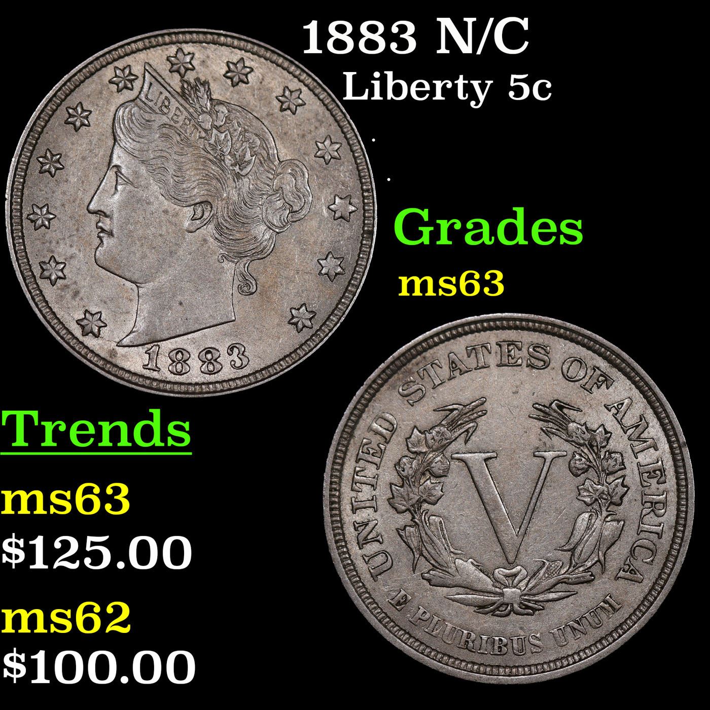 1883 N/C Liberty Nickel 5c Grades Select Unc.