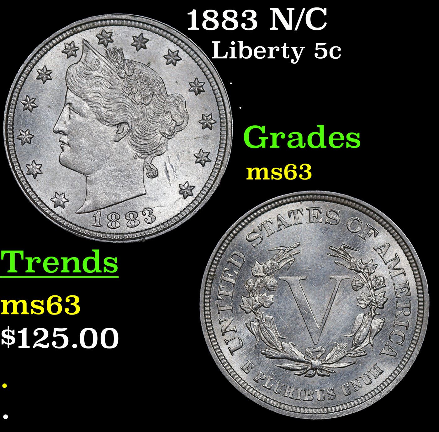 1883 N/C Liberty Nickel 5c Grades Select Unc.