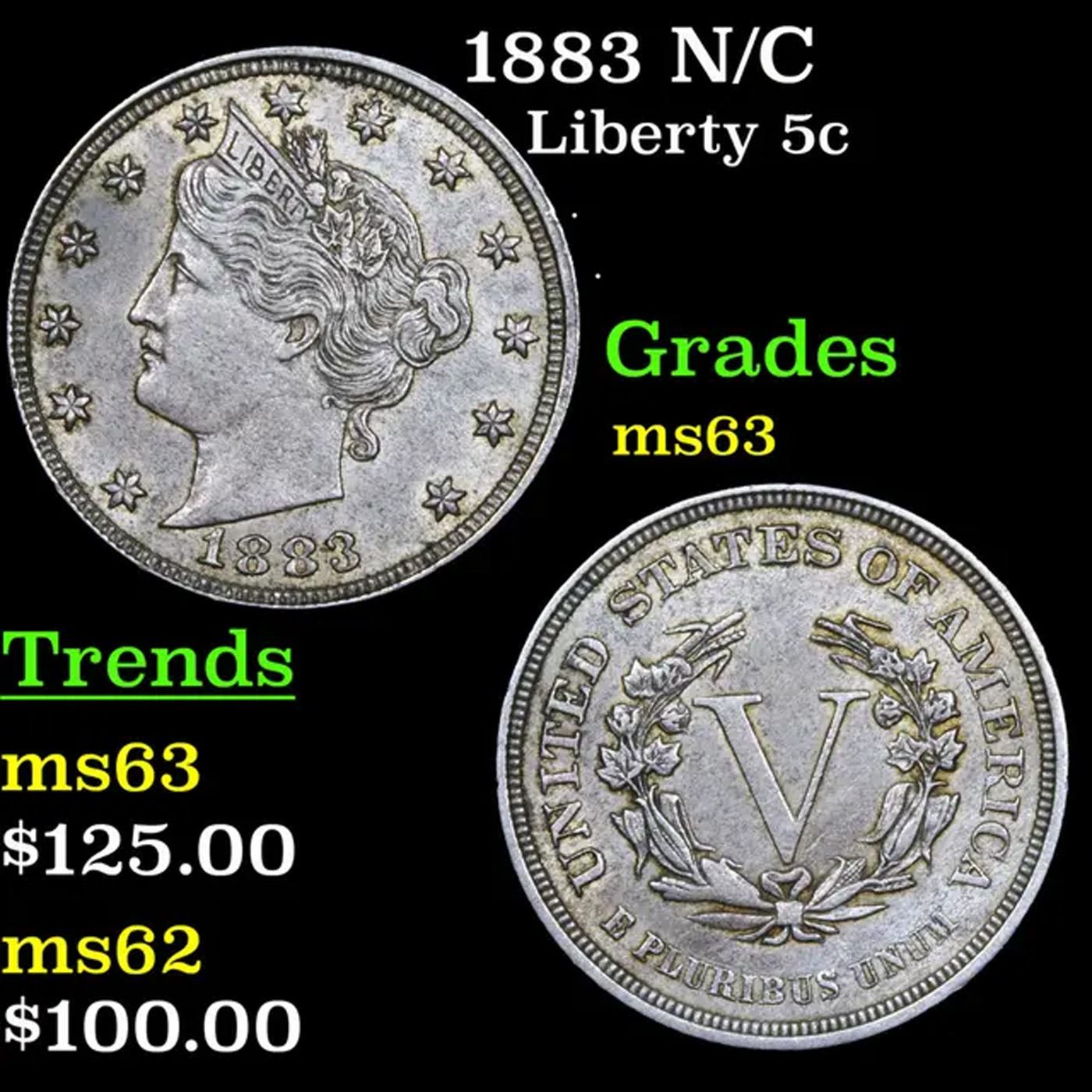 1883 N/C Liberty Nickel 5c Grades Select Unc.