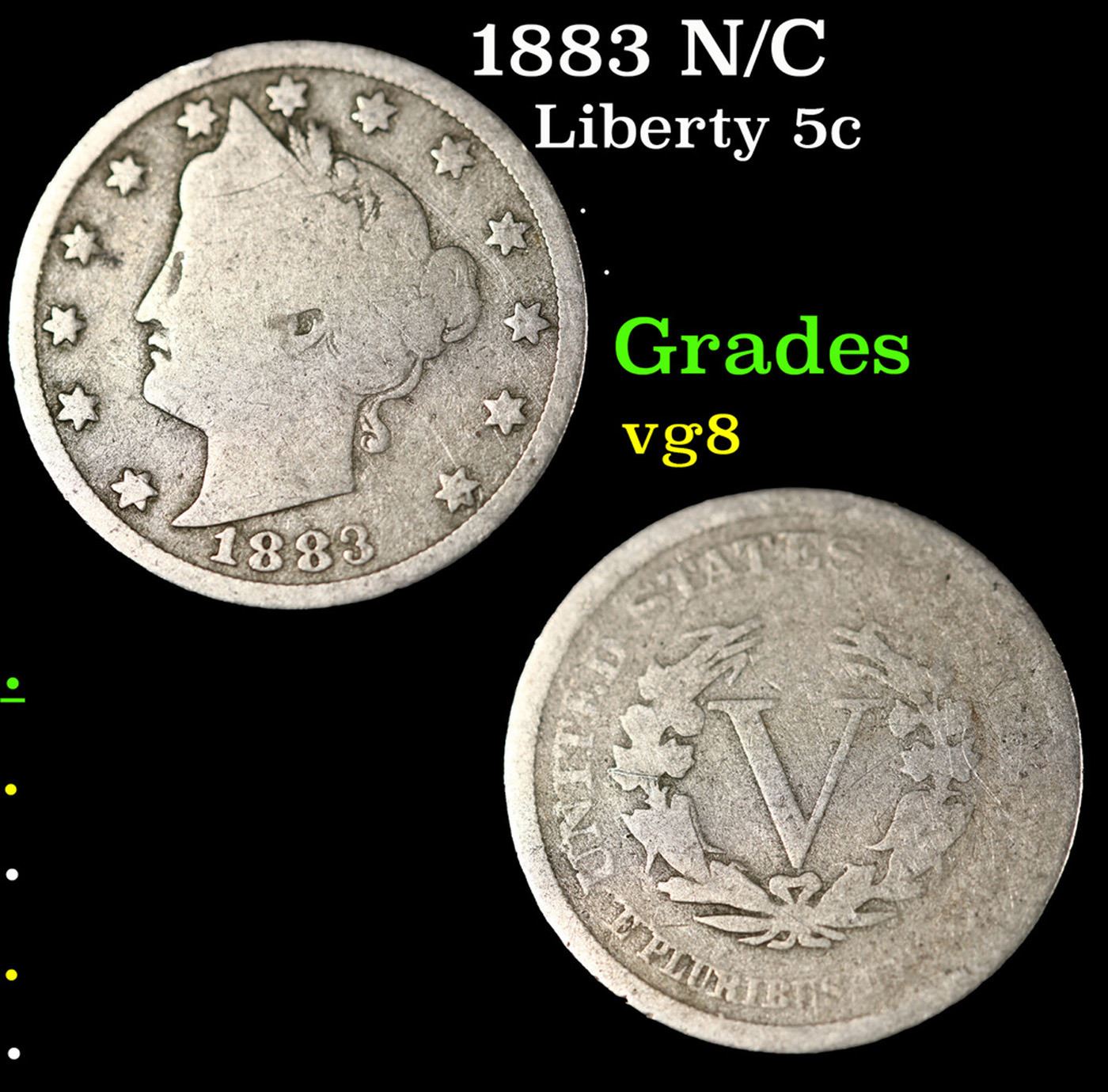 1883 N/C Liberty Nickel 5c Grades vg, very good.