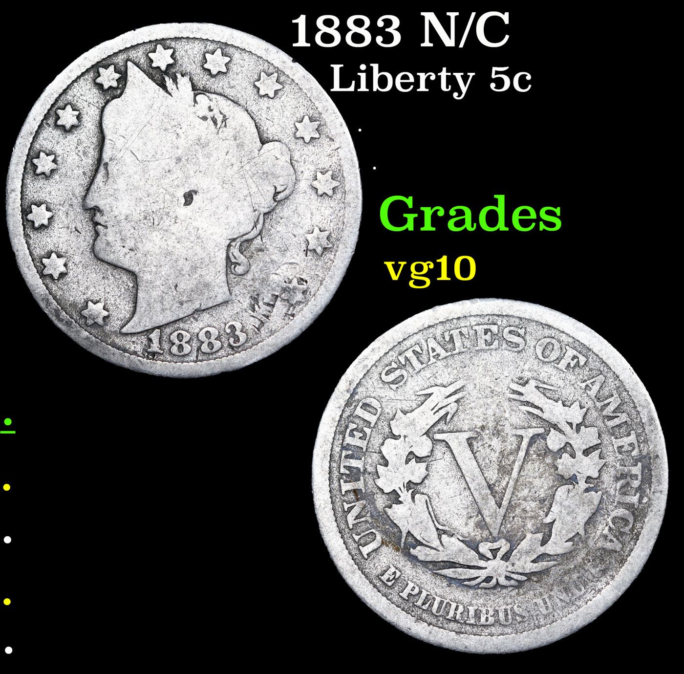 1883 N/C Liberty Nickel 5c Grades vg+.