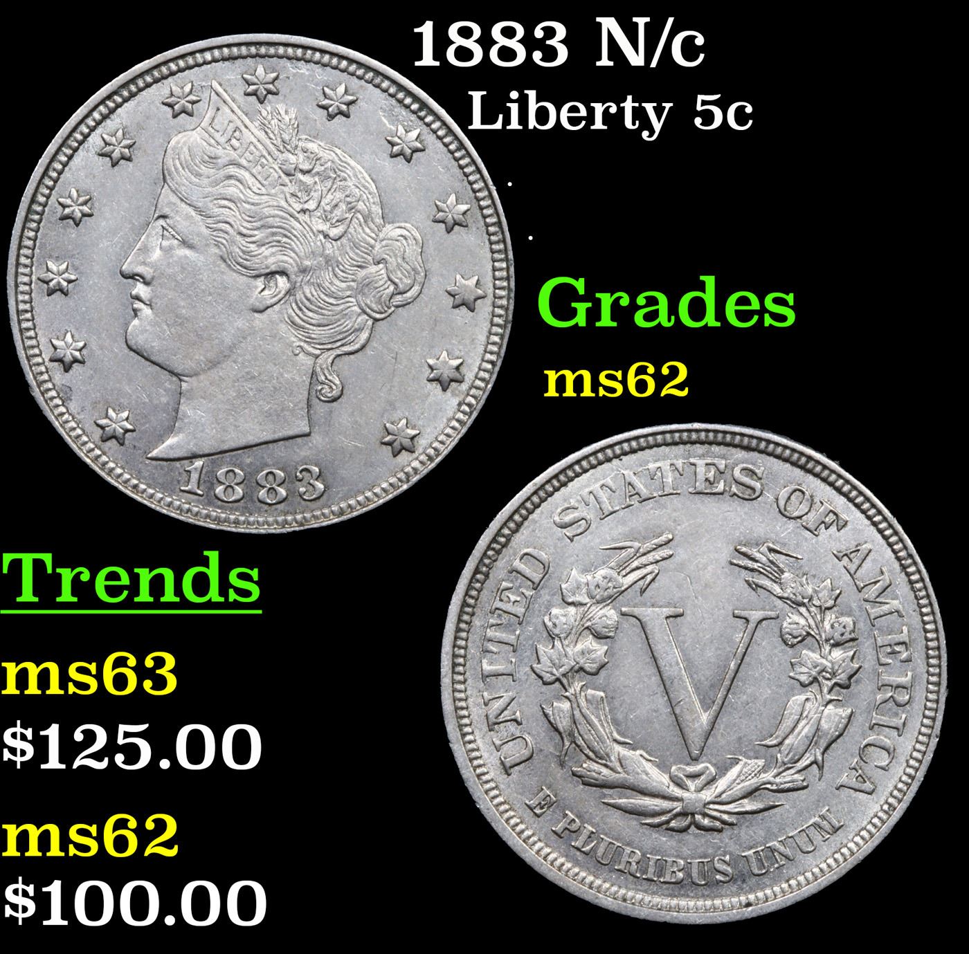 1883 N/c Liberty Nickel 5c Grades Select Unc.