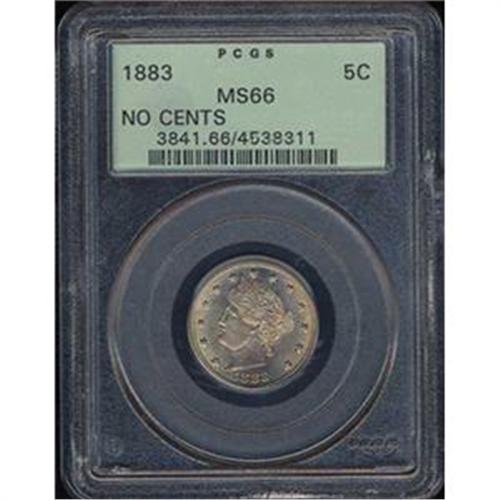 One of several very attractive No CENTS variety Liberty nickels we are pleased to offer, this lovely gem has natural golden brown toning over the nickel-white luster.