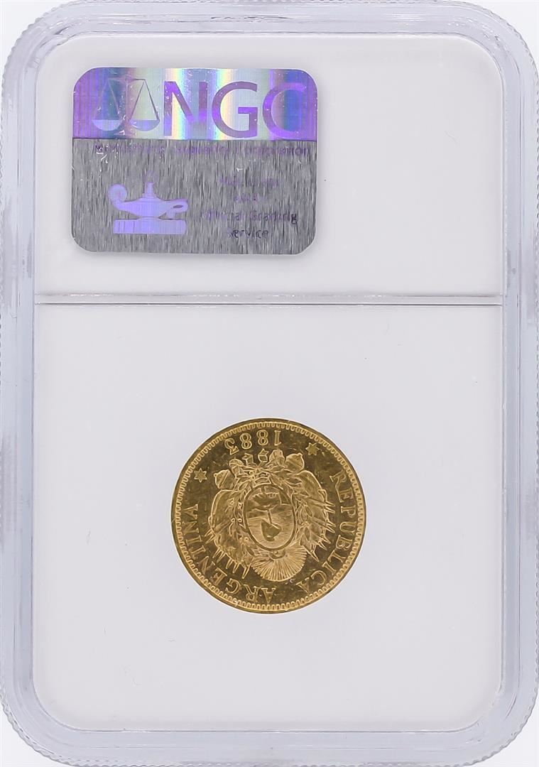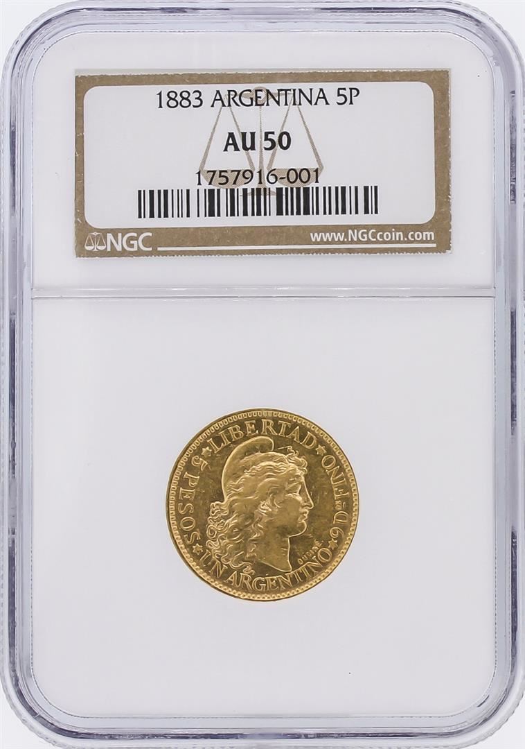 One 1883 NGC AU50 Argentina 5 Pesos Gold Coin. NGC Certified.
