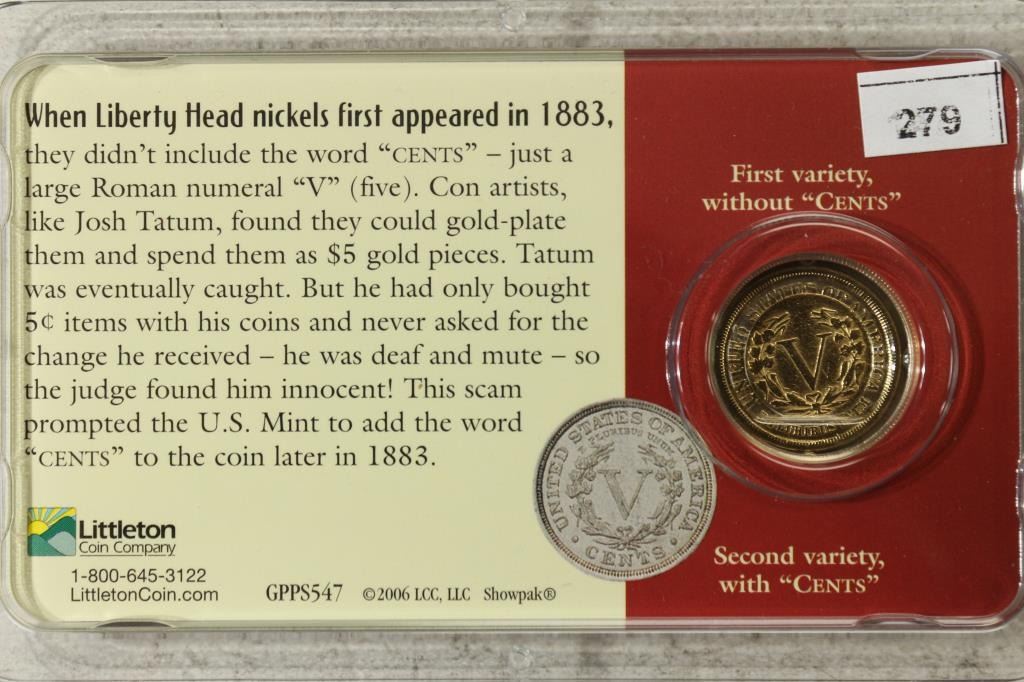 1883 NO CENTS GOLD GILDED "RACKETEER NICKEL"