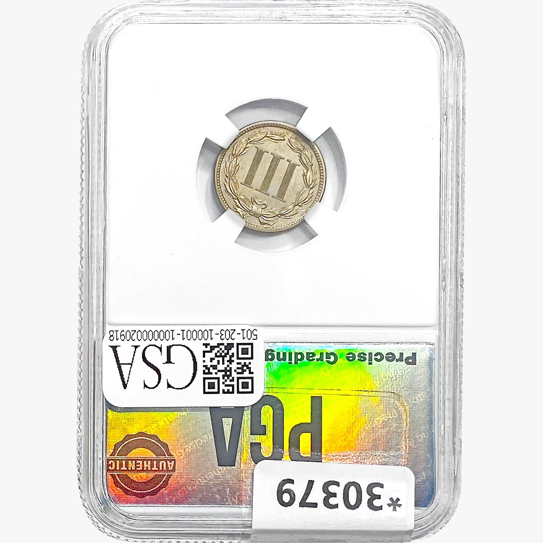 COINS AND CURRENCY LISTED IN GSA’S CATALOG AS GRADED AND ENCAPSULATED BY PCGS, NGC, ANACS, ICG, PCGS CURRENCY, PMG, PCGS BANKNOTE GRADING, CMC OR ANY OTHER THIRD-PARTY GRADING SERVICE ARE LIKEWISE SOLD “AS-IS” EXCEPT AS EXPRESSLY SET FORTH HEREIN. ALL THIRD-PARTY GRADING SERVICE GUARANTEES, INCLUDING AUTHENTICITY, ARE THE SOLE RESPONSIBILITY OF THE THIRD-PARTY GRADING SERVICE AND NOT WARRANTIES OR GUARANTEES OF GSA. BIDDERS SHOULD CONTACT THESE THIRD-PARTY GRADING SERVICES DIRECTLY WITH RESPECT TO ANY CLAIMS OR QUESTIONS THEY MAY HAVE CONCERNING THEIR GUARANTEES AND WARRANTIES. BIDDERS ACKNOWLEDGE AND AGREE THAT AUCTIONEER IS NOT BOUND BY OR LIABLE FOR ANY OPINION OR CERTIFICATION BY ANY THIRD-PARTY GRADING SERVICE. REMOVAL OF A PRODUCT FROM ITS PROTECTIVE CASING OR HOLDER OR ALTERATION OF ANY COIN HOLDER WAIVES ALL RIGHTS CONCERNING THE PRODUCT CONTAINED THEREIN.
