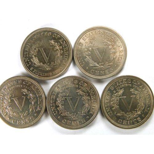 1883 No Cents, 1903, 1909, 1910 and 1912. Five pieces, all Uncirculated