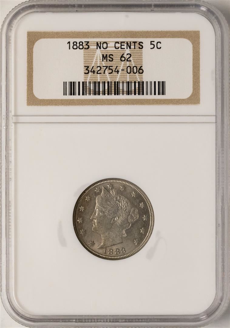 One 1883 No Cents Liberty V Nickel Coin NGC MS62. NGC Certified.
