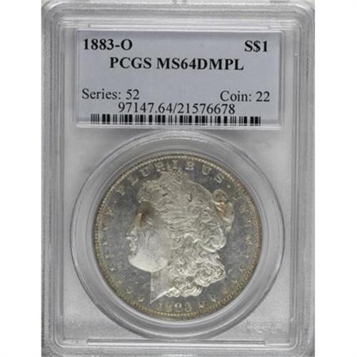 <B>1883-O $1 MS64 Deep Mirror Prooflike PCGS.</B></I> PCGS Population (431/104). NGC Census: (277/60). Numismedia Wsl. Price for NGC/PCGS coin in MS64: $275. (#97147)<BR><BR><b>Shipping:</b> Coins & Currency (<a target="_blank" href="http://www.heritageauctions.com/common/shipping.php">view shipping information</a>)