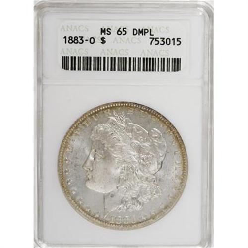 <B>1883-O $1 MS65 Deep Mirror Prooflike ANACS.</B></I> NGC Census: (58/2). PCGS Population (92/12). Numismedia Wsl. Price for NGC/PCGS coin in MS65: $860. (#97147)<BR><BR><b>Shipping:</b> Coins & Currency (<a target="_blank" href="http://www.heritageauctions.com/common/shipping.php">view shipping information</a>)