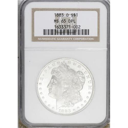 <B>1883-O $1 MS65 Deep Mirror Prooflike NGC.</B></I> NGC Census: (58/2). PCGS Population (92/12). Numismedia Wsl. Price for NGC/PCGS coin in MS65: $860. (#97147)<BR><BR><b>Shipping:</b> Coins & Currency (<a target="_blank" href="http://www.heritageauctions.com/common/shipping.php">view shipping information</a>)