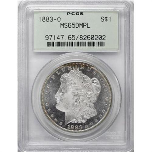 <B>1883-O $1 MS65 Deep Mirror Prooflike PCGS.</B></I> . PCGS Population (92/12). NGC Census: (58/2). Numismedia Wsl. Price for NGC/PCGS coin in MS65: $860. (#97147)<BR><BR><b>Shipping:</b> Coins & Currency (<a target="_blank" href="http://www.heritageauctions.com/common/shipping.php">view shipping information</a>)