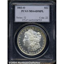 <table><tbody><tr><td><table> <TR><TD width="100%"><TABLE cellSpacing=1 cellPadding=3 width="100%" border=0><TBODY><TR><TD width="100%" bgColor=#79735c><FONT face=arial color=#ffffff size=3><B>Description</B> </FONT></TD></TR><TR><TD width="100%" bgColor=#ffffff><FONT face=arial size=2><B>1883-O $1 MS64 Deep Mirror Prooflike PCGS.</B></I> Yellow patina near the upper right obverse rim is the exception to the otherwise solid white Choice piece with flashy, deep mirrors. It also exhibits frosted, well struck devices, and few contact marks.<BR><I>From the Dylan Elijah Collection of Morgan Dollars.</B></I> </FONT></TD></TR></TBODY></TABLE></TD></TR></TBODY></TABLE><BR><A name=PricesRealized></A><TABLE cellSpacing=0 cellPadding=0 width="100%" bgColor=#000000 border=0><TBODY><TR><TD width="100%"><TABLE cellSpacing=1 cellPadding=3 width="100%" border=0><TBODY><TR><TD width="100%" bgColor=#79735c><A name=PR><FONT face=arial color=#ffffff size=3><B>Previous Prices from Heritage Auctions</B> </FONT></A></TD></TR><TR><TD bgColor=#f6f6ed><TABLE cellSpacing=0 cellPadding=0 width="100%" border=1><TBODY><TR><TD align=middle width="33%"><B>Date</B></TD><TD align=middle width="33%"><B>Service</B></TD><TD align=middle width="33%"><B>Price</B></TD></TR><TR bgColor=whitesmoke><TD width="33%"><B>10/22/2002</B></TD><TD width="33%">NGC</TD><TD width="33%">$120.75</TD></TR><TR bgColor=whitesmoke><TD width="33%"><B>12/18/2001</B></TD><TD width="33%">PCGS</TD><TD width="33%">$155.00</TD></TR><TR bgColor=whitesmoke><TD width="33%"><B>03/03/2003</B></TD><TD width="33%">PCGS</TD><TD width="33%">$161.00</TD></TR><TR bgColor=whitesmoke><TD width="33%"><B>02/24/2001</B></TD><TD width="33%">PCGS</TD><TD width="33%">$149.50</TD></TR><TR bgColor=whitesmoke><TD width="33%"><B>06/05/1999</B></TD><TD width="33%">PCGS</TD><TD width="33%">$121.00</TD></TR></TBODY></TABLE></TD></TR><TR><TD bgColor=#ffffff><FONT face=arial size=1 ?>PLEASE NOTE: All prices realized reflect the final hammer price PLUS the buyer's premium in auctions that charge a buyer's premium. Each item has a notation at the top of the listing indicating whether that lot included a buyer's premium. Example: A item that sells with a final hammer price of $100 and a 20% buyer's premium will display with a price realized of $120. All information listed is intended to be as accurate as possible, but errors are possible. Please use this guide carefully and inform us of any inaccuracies. </FONT></TD></TR></TBODY></TABLE></TD></TR></TBODY></TABLE><BR><TABLE cellSpacing=0 cellPadding=0 width="100%" bgColor=#000000 border=0><TBODY><TR><TD width="100%"><TABLE cellSpacing=1 cellPadding=3 width="100%" border=0><TBODY><TR><TD width="100%" bgColor=#79735c colSpan=6><FONT face=arial color=#ffffff size=3><B>Price Guide*</B> </FONT></TD></TR><TR bgColor=#f6f6ed><TD align=middle><B>Grade</B> </TD><TD align=middle><B>Coin World<BR>(Trends)</B> </TD><TD align=middle><B>Numismedia<BR>Retail</B> </TD><TD align=middle><B>Numismedia<BR>Wholesale</B> </TD><TD align=middle><B>Coin<BR>Universe</B> </TD><TD align=middle><B>Heritage<BR>Value Index</B> </TD></TR><TR bgColor=#ffffff><TD align=middle>63</TD><TD align=right>$60.00</TD><TD align=right>$65.00</TD><TD align=right>$52.00</TD><TD align=right>$80.00</TD><TD align=right>$48.70</TD></TR><TR style="FONT-WEIGHT: bold" bgColor=#cccfdd><TD align=middle>64</TD><TD align=right>$160.00</TD><TD align=right>$150.00</TD><TD align=right>$120.00</TD><TD align=right>$135.00</TD><TD align=right>$121.50</TD></TR><TR bgColor=#ffffff><TD align=middle>65</TD><TD align=right>$650.00</TD><TD align=right>$630.00</TD><TD align=right>$500.00</TD><TD align=right>$620.00</TD><TD align=right>$413.50</TD></TR><TR bgColor=#ffffff><TD colSpan=6><FONT size=1>*All information listed is intended to be as accurate as possible, but errors are possible. No item may be returned or refused based on this information which is provided as a service to our customers. You should contact each pricing source directly to determine the accuracy of this information. </FONT></TD></TR></TBODY></TABLE></TD></TR></TBODY></TABLE><BR><TABLE cellSpacing=0 cellPadding=0 width="100%" bgColor=#000000 border=0><TBODY><TR><TD width="100%"><TABLE cellSpacing=1 cellPadding=3 width="100%" border=0><TBODY><TR><TD width="100%" bgColor=#79735c><FONT face=arial color=#ffffff size=3><B>Population Guide</B> </FONT></TD></TR><TR bgColor=#ffffff><TD align=middle><!-- Begin Output of Population Grid--><TABLE cellSpacing=0 cellPadding=0 width="100%" border=0><TBODY><TR><TD vAlign=center><TABLE cellSpacing=0 width="100%" border=1 cellsadding="3"><TBODY><TR><TD vAlign=center><TABLE cellSpacing=0 cellPadding=3 width="100%" border=1><TBODY><TR><TD vAlign=center align=middle bgColor=#f0f1e8 colSpan=2 <CENTER><FONT face=Arial size=2><B>PCGS Pop </B></FONT><CENTER></CENTER></TD><TD vAlign=center align=middle bgColor=#f0f1e8 colSpan=2><CENTER><FONT face=Arial size=2><B>NGC Pop</B></CENTER></FONT></TD></TR><TR><TD vAlign=center><FONT face=Arial size=2>(64)</FONT> </TD><TD vAlign=center align=right><FONT face=Arial size=2>411</FONT> </TD><TD vAlign=center><FONT face=Arial size=2>(64)</FONT> </TD><TD vAlign=center align=right><FONT face=Arial size=2>246</FONT> </TD></TR><TR><TD vAlign=center><FONT face=Arial size=2>(>64)</FONT> </TD><TD vAlign=center align=right><FONT face=Arial size=2>94</FONT> </TD><TD vAlign=center><FONT face=Arial size=2>(>64)</FONT> </TD><TD vAlign=center align=right><FONT face=Arial size=2>52</FONT> </TD></TR></TBODY></TABLE></TD></TR></TBODY></TABLE></TD></TR></TBODY></TABLE><!-- End Output of Population Grid--></TD></TR></TBODY></TABLE></TD></TR></TBODY></TABLE><BR><TABLE cellSpacing=0 cellPadding=0 width="100%" bgColor=#000000 border=0><TBODY><TR> <font color='#000000'><span style='background-color: #FFFFFF'><td bgcolor='#FFFFFE'> Important notice: Heritage usually auctions material at the rate of 200-250 lots per hour. On some occasions eBay Live bid software or the Internet may not be abl