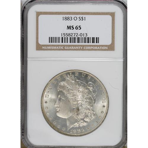 <B>1883-O $1 MS65 NGC.</B></I> NGC Census: (7065/712). PCGS Population (5578/564). Mintage: 8,725,000. Numismedia Wsl. Price: $123. (#7146)<BR><BR><b>Shipping:</b> Coins & Currency (<a target="_blank" href="http://www.heritageauctions.com/common/shipping.php">view shipping information</a>)