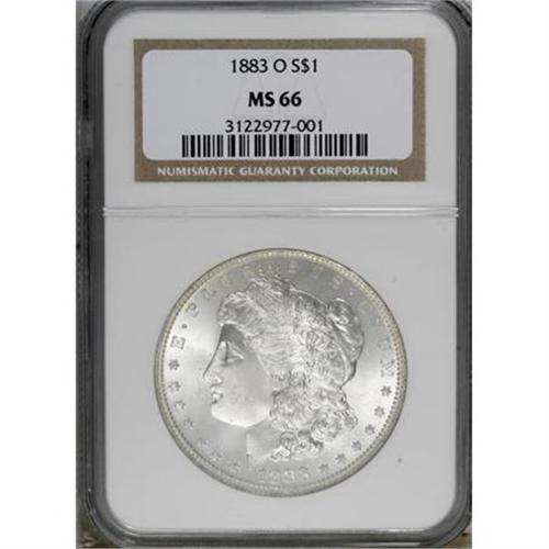 <B>1883-O $1 MS66 NGC.</B></I> . NGC Census: (760/24). PCGS Population (567/27). Mintage: 8,725,000. Numismedia Wsl. Price for NGC/PCGS coin in MS66: $360. (#7146)<BR><BR><B>Coin Engraver:</B> George T. Morgan<BR><BR><b>Shipping:</b> Coins & Currency (<a target="_blank" href="http://www.heritageauctions.com/common/shipping.php">view shipping information</a>)