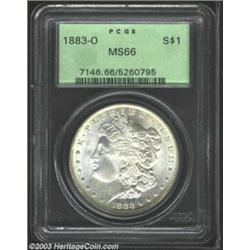 1883-O $1 MS66 PCGS. A lustrous and boldly struck Gem with hints of apricot patina throughout the...