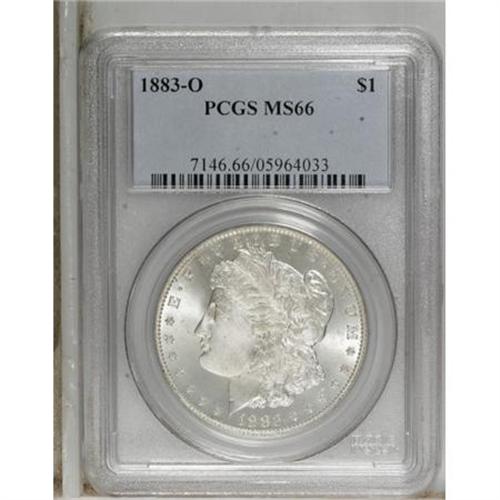 <B>1883-O $1 MS66 PCGS.</B></I> PCGS Population (527/28). NGC Census: (717/25). Mintage: 8,725,000. Numismedia Wsl. Price for NGC/PCGS coin in MS66: $320. (#7146)<BR><BR><b>Shipping:</b> Coins & Currency (<a target="_blank" href="http://www.heritageauctions.com/common/shipping.php">view shipping information</a>)