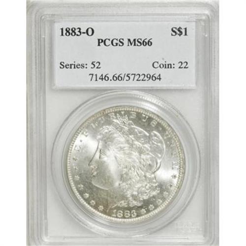 <B>1883-O $1 MS66 PCGS.</B></I> Light die cracks appear on the obverse through the bust truncation on this lustrous, silver-white Premium Gem. The frosty surfaces reveal few abrasions.<BR><I>From The Motor City Collection.</B></I><BR><BR><B>Coin Engraver:</B> George T. Morgan<BR><BR><b>Shipping:</b> Coins & Currency (<a target="_blank" href="http://www.heritageauctions.com/common/shipping.php">view shipping information</a>)