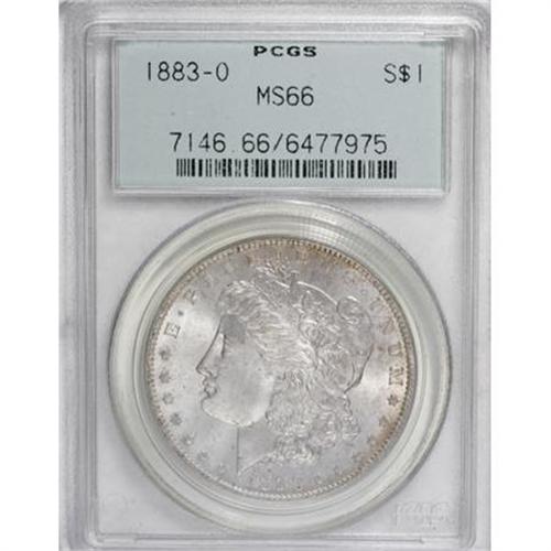 <B>1883-O $1 MS66 PCGS.</B></I> . PCGS Population (565/27). NGC Census: (760/25). Mintage: 8,725,000. Numismedia Wsl. Price for NGC/PCGS coin in MS66: $360. (#7146)<BR><BR><B>Coin Engraver:</B> George T. Morgan<BR><BR><b>Shipping:</b> Coins & Currency (<a target="_blank" href="http://www.heritageauctions.com/common/shipping.php">view shipping information</a>)