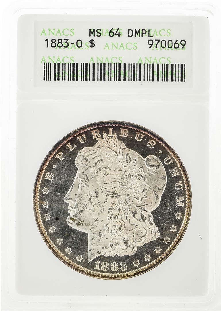 One 1883-O $1 Morgan Silver Dollar Coin ANACS MS64 DMPL. ANACS Certified.