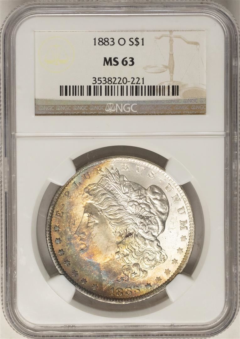 One 1883-O $1 Morgan Silver Dollar Coin NGC MS63 AMAZING Toning. NGC Certified.