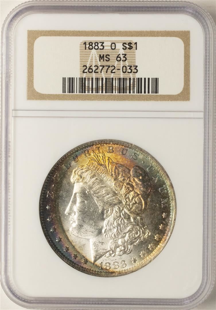 One 1883-O $1 Morgan Silver Dollar Coin NGC MS63 Amazing Rainbow Toning. NGC Certified.