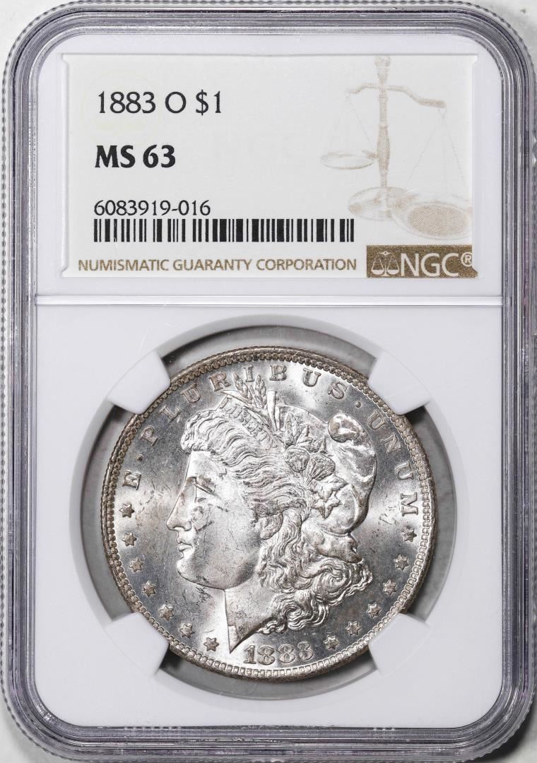 One 1883-O $1 Morgan Silver Dollar Coin NGC MS63 Great Toning. NGC Certified.
