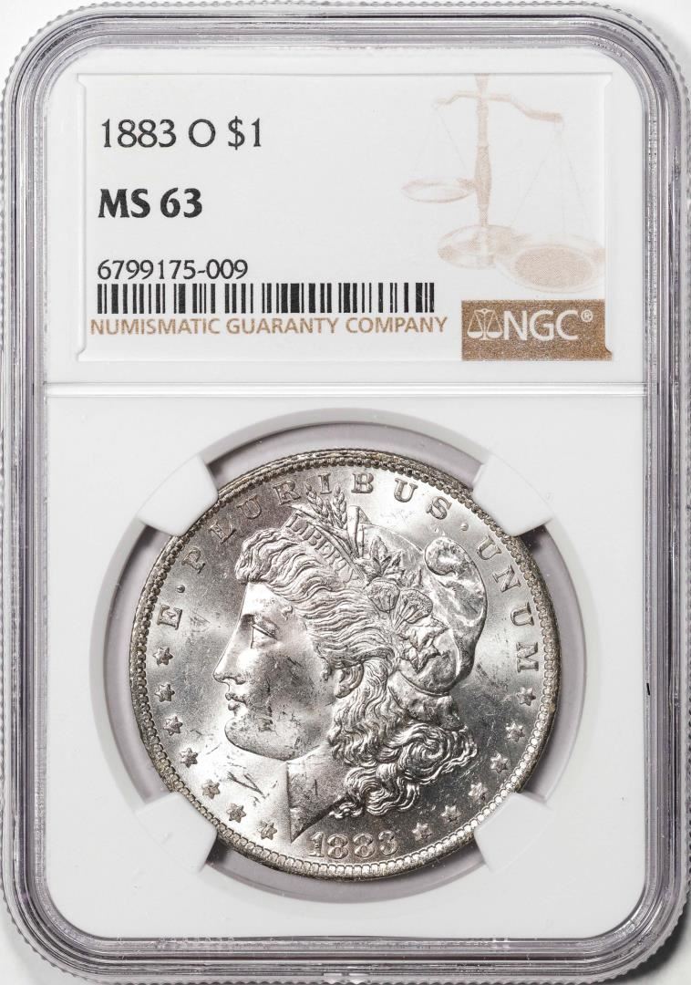 One 1883-O $1 Morgan Silver Dollar Coin NGC MS63. NGC Certified.