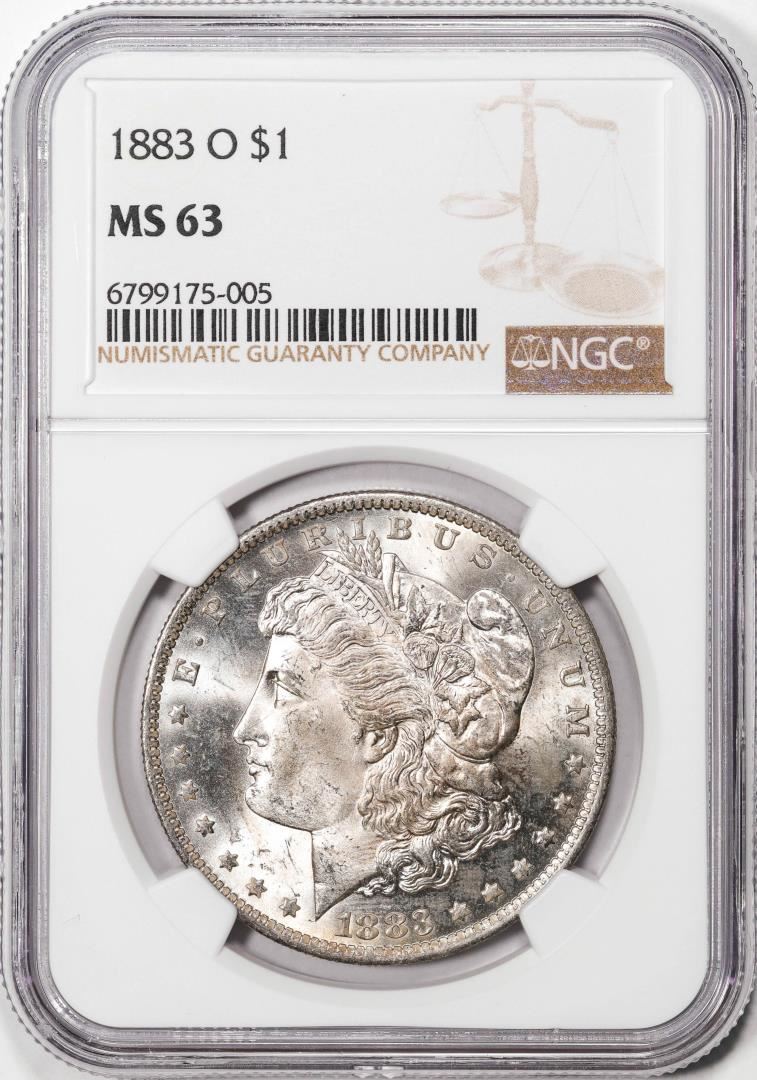 One 1883-O $1 Morgan Silver Dollar Coin NGC MS63. NGC Certified.