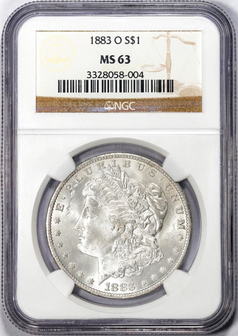 One 1883-O $1 Morgan Silver Dollar Coin NGC MS63.