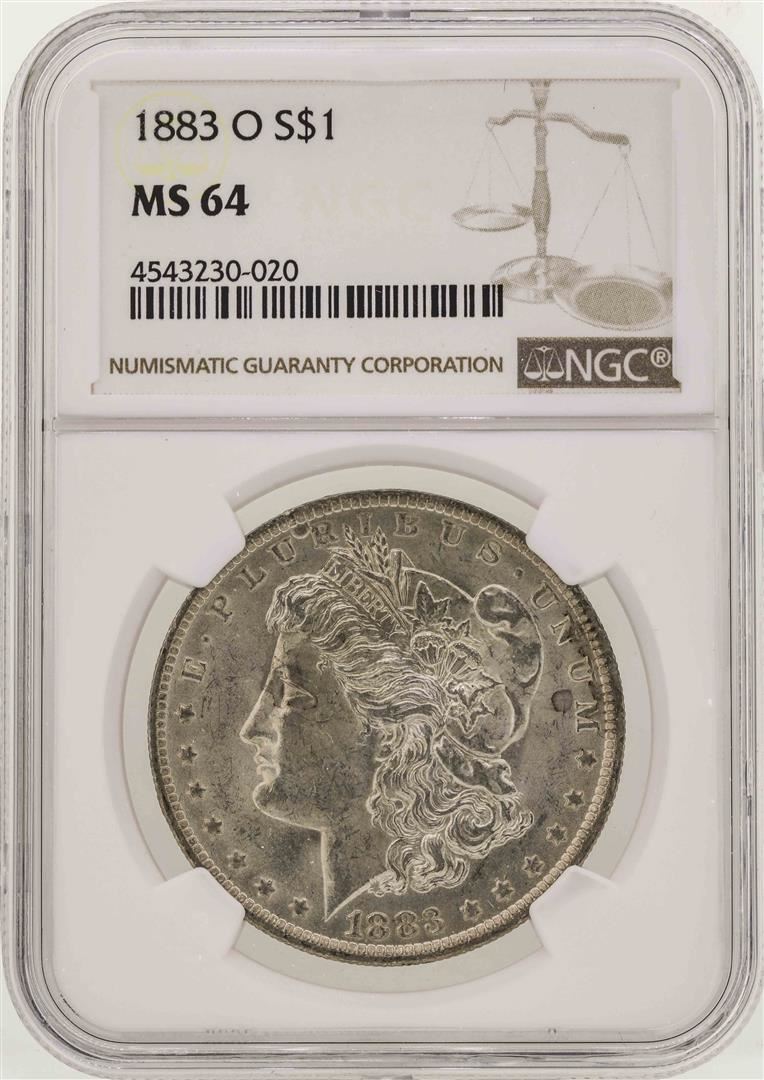 One 1883-O $1 Morgan Silver Dollar Coin NGC MS64. NGC Certified.