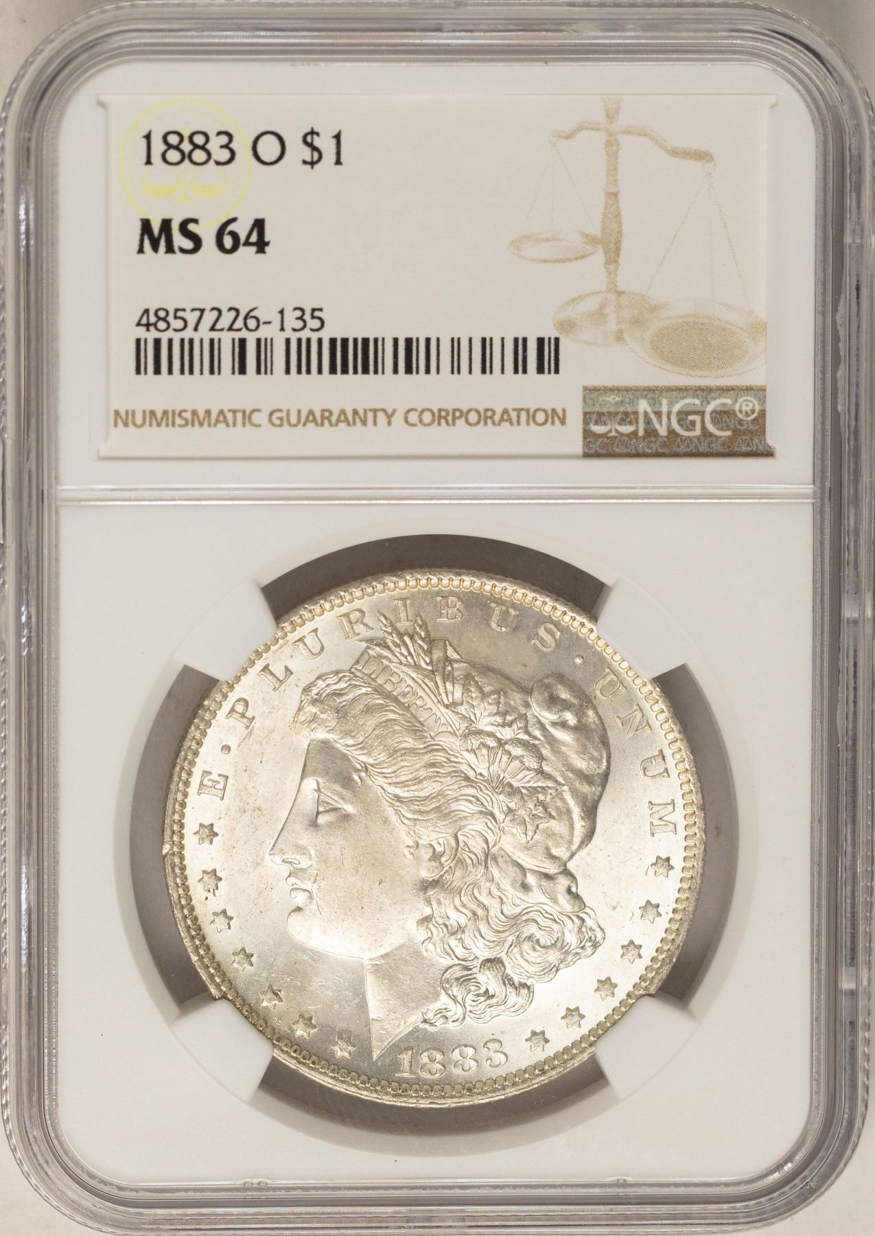 One 1883-O $1 Morgan Silver Dollar Coin NGC MS64.
