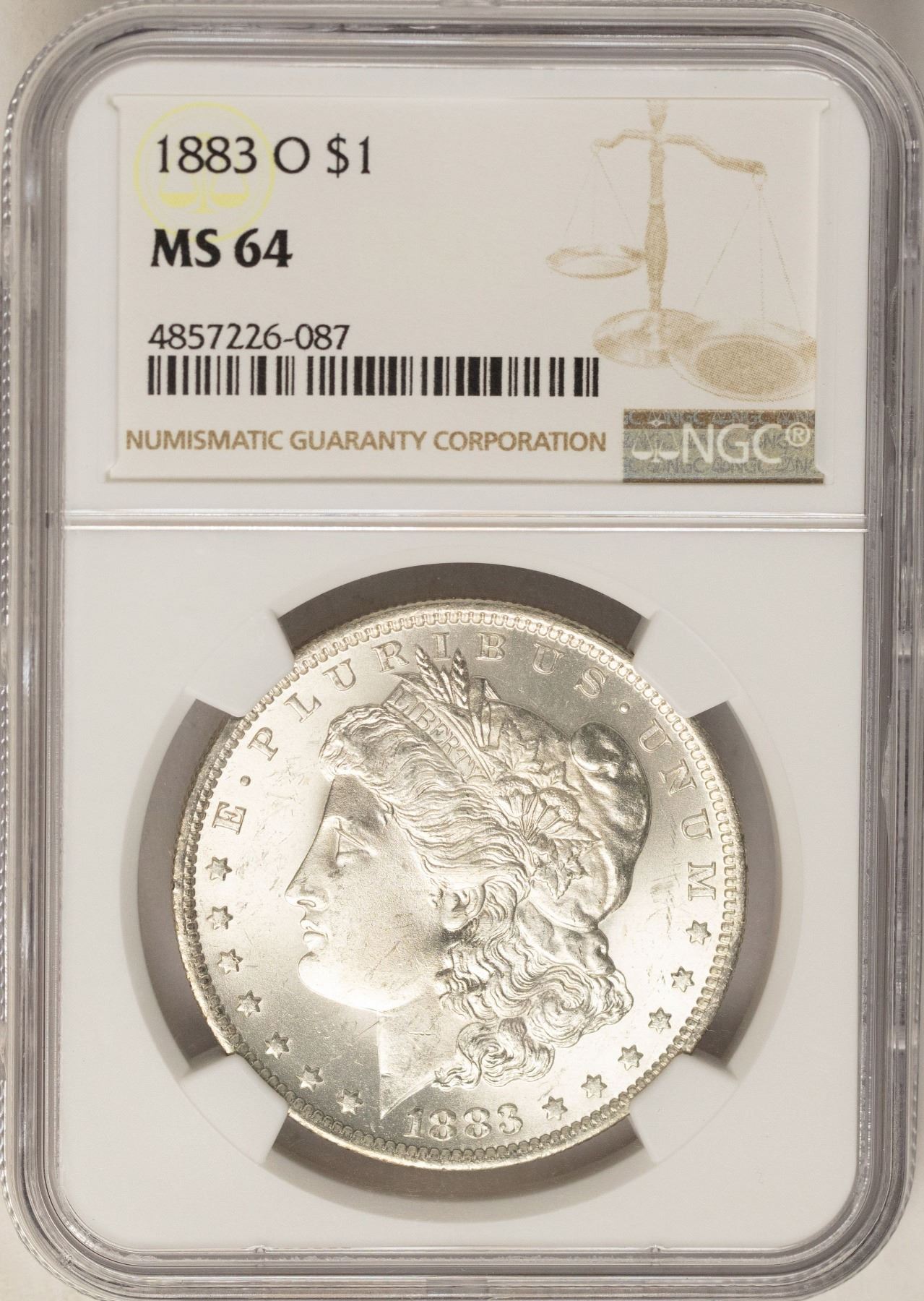 One 1883-O $1 Morgan Silver Dollar Coin NGC MS64.