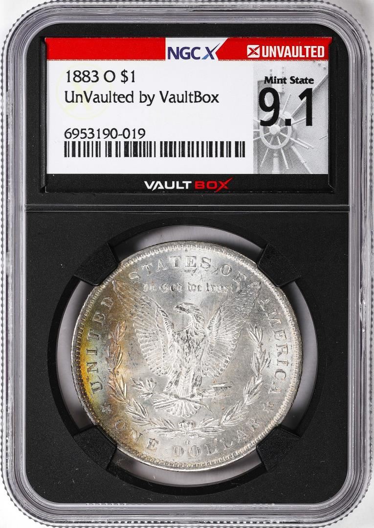 One 1883-O $1 Morgan Silver Dollar Coin NGCX Mint State 9.1 VaultBox Great Toning. NGCX Certified.