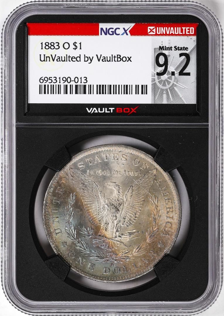 One 1883-O $1 Morgan Silver Dollar Coin NGCX Mint State 9.2 VaultBox Amazing Toning. NGCX Certified.