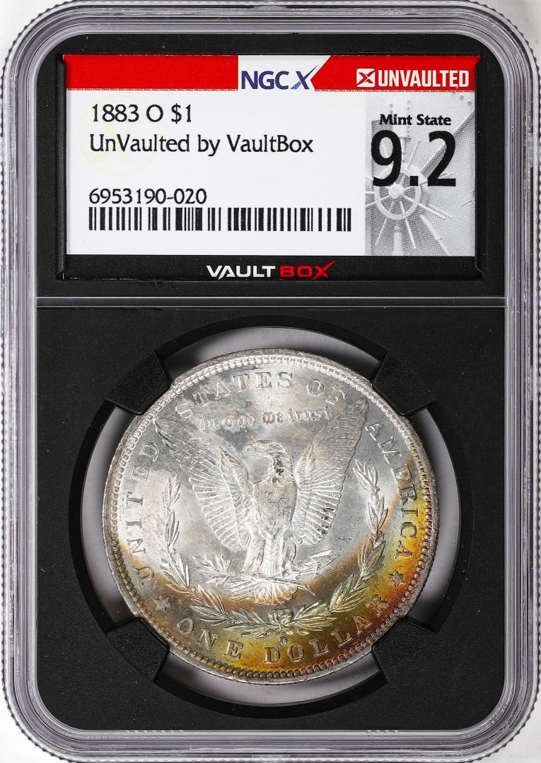 1883-O $1 Morgan Silver Dollar Coin NGCX Mint State 9.2 VaultBox Amazing Toning